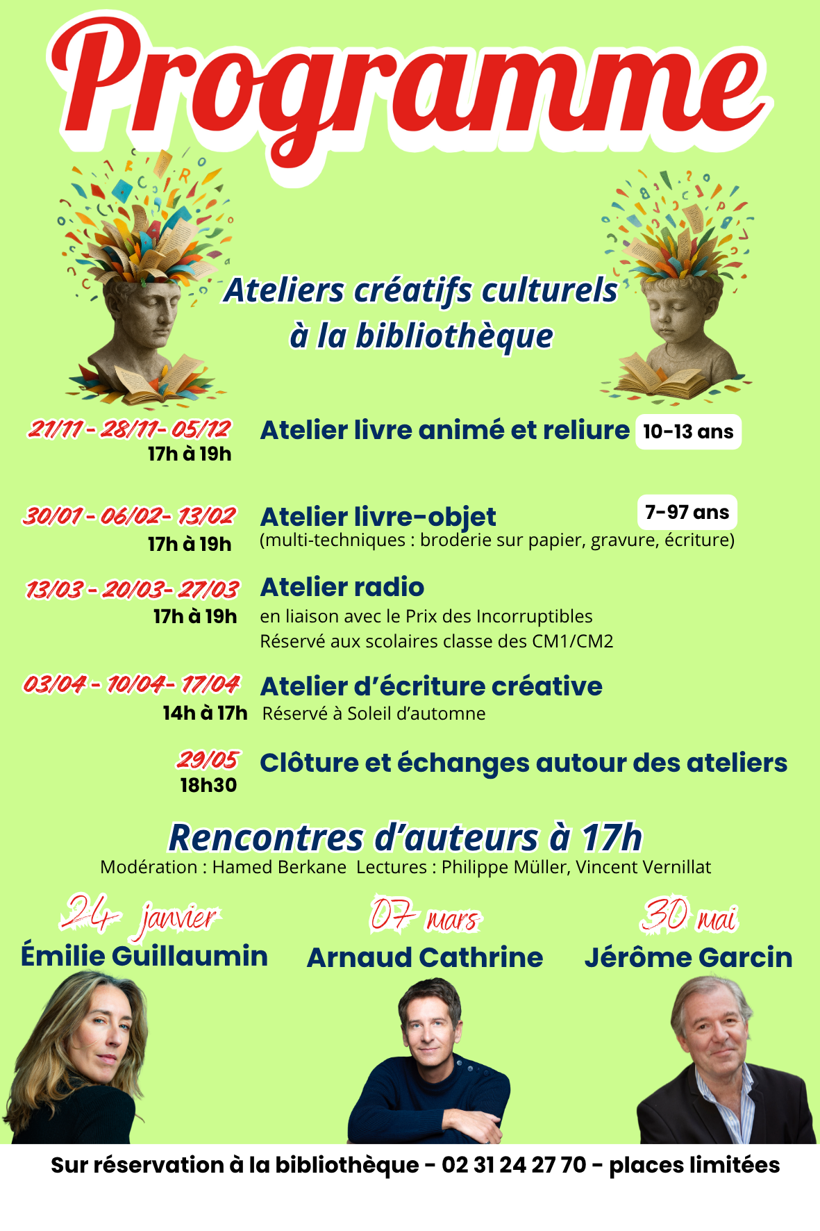 La bibliothèque accueille des ateliers créatifs et rencontre d'auteurs dans le cadre d'un projet culturel en lien avec PMVV la compagnie le grain de sable et soutenu par Normandie Cabourg Pays d'Auge.