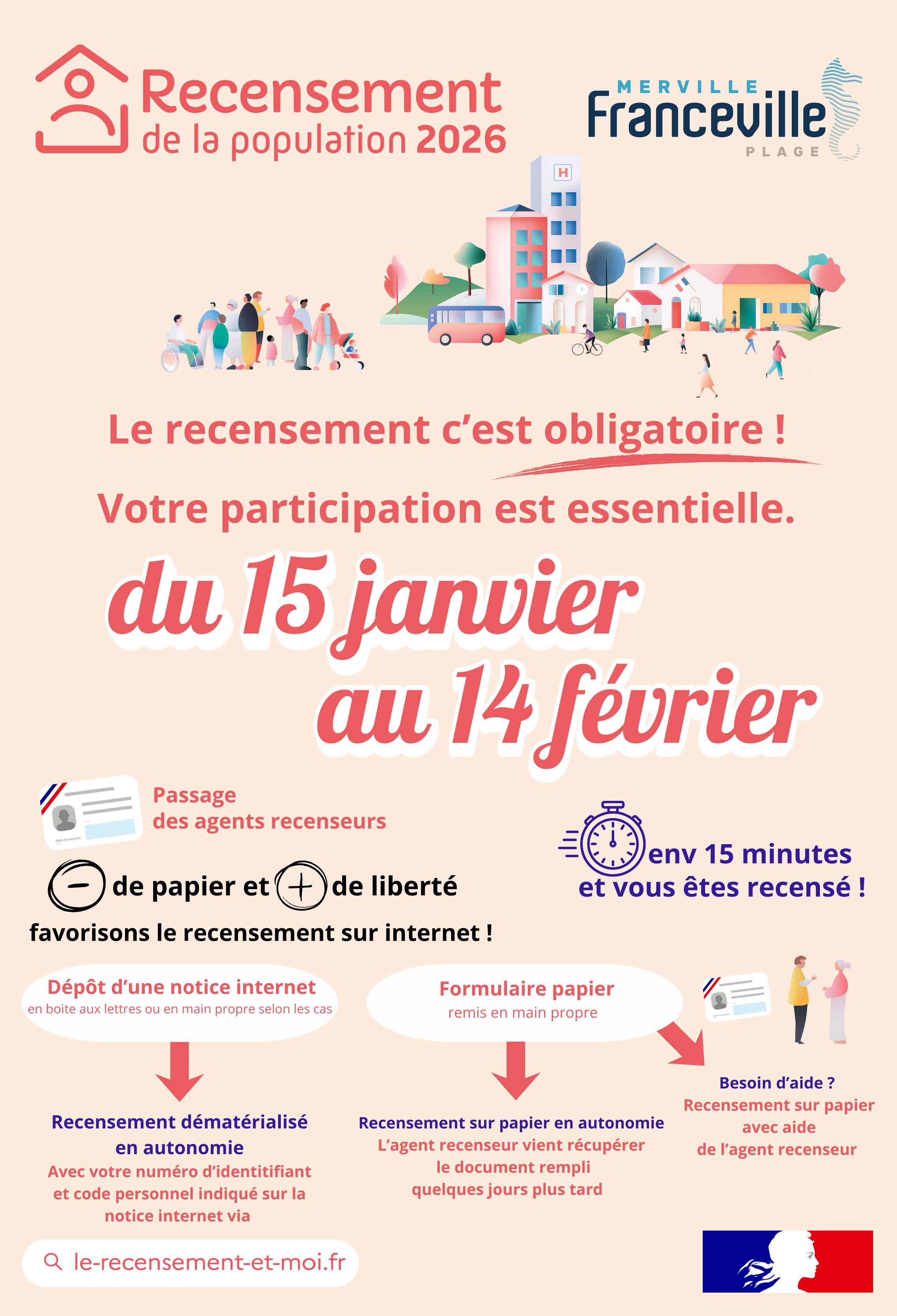 A partir d'aujourd'hui et dans les prochains jours, vous recevrez en main propre ou dans votre boite la notice de recensement. Votre participation est essentielle.
